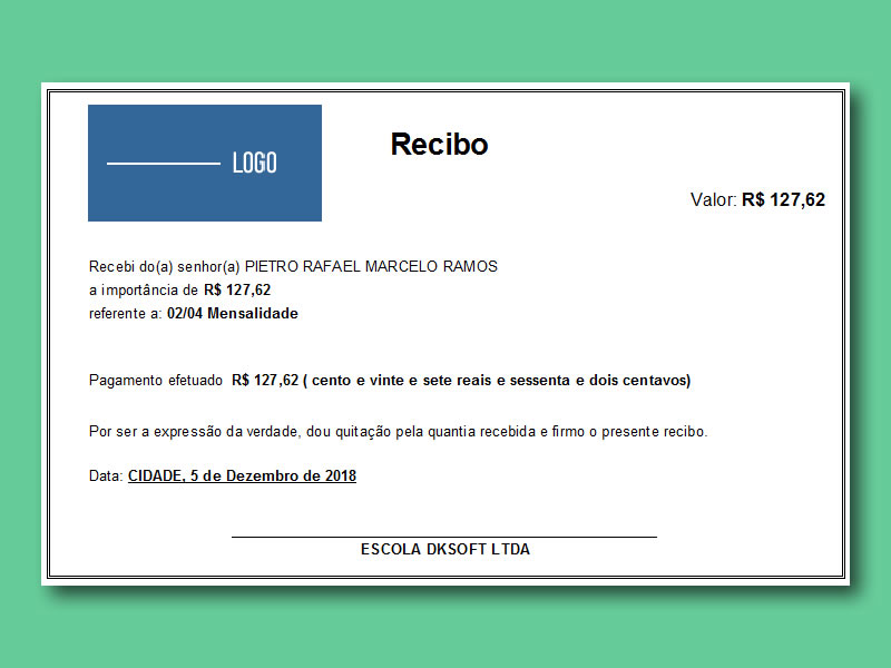 Modelo de recibo para folha A4. | Download |
