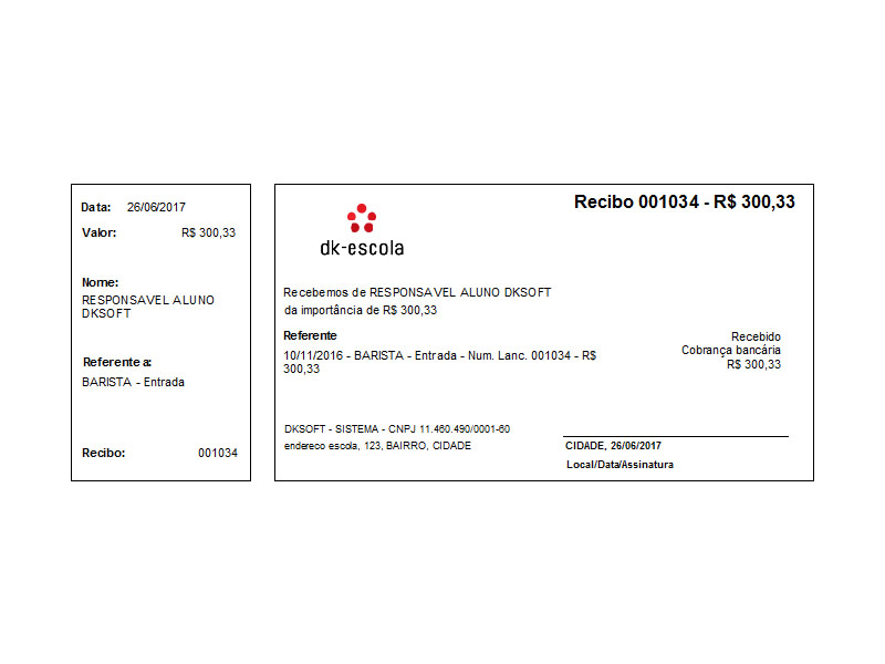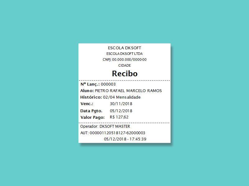 Recibo para impresso não fiscal. Compacto e com código de autenticação. Contém os dados principais e linha com códigos de autenticação. | Download |