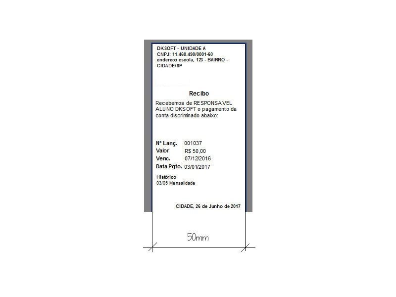 Recibo não fiscal com dados padrão do sistema para bobinas 50mm. | Download |